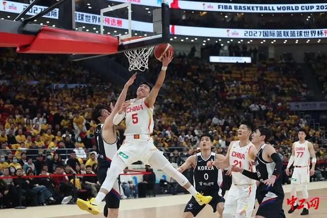 世预赛首轮对阵韩国队的比赛中,廖三宁投篮中。工人日报记者 王伟伟 摄